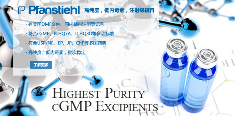 “熱烈祝賀Pfanstiehl的注射級甘氨酸Glycine(G-140)喜獲CDE登記號F20250000403, 這是Pfanstiehl產品獲得的第18個CDE登記號!”甘氨酸在醫藥輔料制劑中應用廣泛,, 可作為緩沖劑,增溶劑,穩定劑等,具有諸多優勢。Pfanstiehl秉承一貫高品質理念,為滿足全球生物制藥行業對于高品質甘氨酸的需求,隆重推出的注射級甘氨酸Glycine (G-140), 具有超高純度,超低內毒素,超低金屬殘留的特點,單獨檢測29種金屬離子,并且新增DNA,RNA,DNA酶,RNA酶和脂肪酶,亞硝酸鹽等多項質量指標的檢測,符合多國藥典規定(USP, EP, BP, JPE, ChP),可用于生物治療性藥物和疫苗的生產。產品信息:· 產品名稱:Glycine, High Purity, Low Endotoxin, Low Metals, USP, EP, BP, JPE, ChP (G-140)· 中文名稱:甘氨酸· 分子式:C2H5NO2· 分子量:75.07 g / mol· CAS號:56-40-6· 產品貨號:G-140產品特點: · 超高純度,超低內毒素,超低微生物含量,超低金屬雜質殘留· 質量指標新增DNA,RNA,DNA酶,RNA酶,脂肪酶和亞硝酸鹽檢測· 符合多國藥典:USP, EP, BP, JPE, ChP· 符合ICH Q3D標準· 符合GMP標準· 已獲DMF和CDE登記號 產品應用:· 緩沖劑· 穩定劑· 增溶劑如果您對Pfanstiehl注射級別Glycine G-140感興趣,歡迎聯系Pfanstiehl 中國區代理商北京西美杰科技有限公司獲得如下詳細的產品概況說明文件和測試樣品。Pfanstiehl Inc.最新產品系列如下,歡迎聯系北京西美杰科技有限公司獲取100g裝免費樣品。北京西美杰科技有限公司為Pfanstiehl中國代理,為客戶提供完善的技術支持與售后服務。歡迎撥打西美杰客服電話400-050-4006或者登陸網站www_xmjsci_com.wubinbin.cn了解更多信息。 更多>